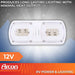 These Sleek Euro-style 12 volts dome lights features an easy-to-use on/off/on switch and squeeze-remove lens. Available in a single or double design in white base.
