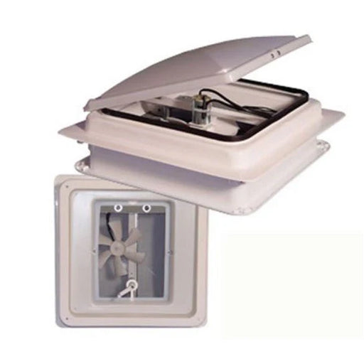Roof Vent; Powered Opening; For 14 Inch x 14 Inch; With Screen; With 12 Volt Fan; Pure White Screen Frame/ White Lid; Galvanized Metal Base; Stand...